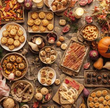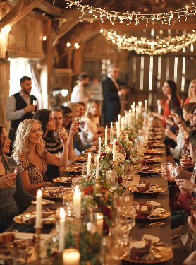 The menus of 2025 are all about celebrating the harvest. Slow cooked meats and smoked fish, Roasted root vegetables, wild mushrooms, squash and stone fruits  create bold, celebratory flavours that also speak to familiarity and comfort. While locally sourced produce adds authenticity and depth. Canapés set the tone for the evening—truffles whipped ghost curd and,mushroom arancini bites. or smoked salmon pâte on charcoal sourdough delight the senses and spark conversation. Desserts are indulgent but elegant: think apricot and amaretto cheesecake, sticky toffee pudding with velvety toffee sauce and thick pouring cream or chocolate delice with its rich ganache and almond crumb creations that feel like autumn on a plate. flowing from the first sip to the last toast.