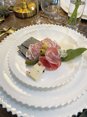 In 2025, how food is presented matters as much as the flavours themselves. Wooden boards, ceramic plates, and hand-blown glassware complement rustic venues, while linen napkins, velvet cushions, and natural table runners add textural depth. Every detail, from the canapé trays to the dessert platters, is intentionally chosen to elevate the experience and tie the menu seamlessly into the overall style. As a caterer, creating a cohesive flow—when dishes arrive, how they’re served, and the way they’re plated—is just as important as the ingredients themselves.